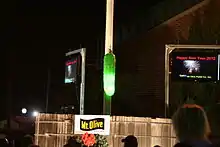 On December 31, 1999, the Mt. Olive Pickle Company held the first New Year's Eve "pickle drop", in which a glowing green 3-foot (1 m)-high pickle is lowered on a flagpole at 7 o'clock EST (midnight Greenwich Mean Time). Guests are provided with hats, noisemakers, and refreshments including cookies, hot chocolate and pickles. The event has turned into an annual occurrence and a source of pride for the community and also benefits the Food Bank of North Carolina through donations of canned goods from guests.[10] The Pickle Drop had its 20th anniversary on December 31, 2019.[11]