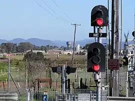 Mulgrave railway station is on the Richmond railway line. It is four stations from the terminus station at Richmond. Mulgrave station is 53 kilometres (33 mi) from Sydney's Central Station, which takes approximately 1 hour 6 minutes to travel by train during peak hour.[5] The station along with the arrival of a steam train features in The Seekers at Home TV special, 1968. Filmed as the setting for the song "Angeline is always Friday", steam hauled services ceased to operate shortly afterwards.