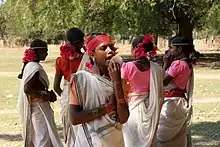 The Muria generally marry late[11] and do not pay dowries.[12] They are not allowed to marry from within their own clan, although a Muria man may marry his cousin. Cousin marriage is common, with Muria men often marrying their mother's brother's daughter or father's sister's daughter.[13]