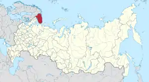 Murmansk Oblast (Russian: Му́рманская о́бласть, romanized: Murmanskaya oblast, IPA: [ˈmurmənskəjə ˈobləsʲtʲ]; Kildin Sami: Мурман е̄ммьне, romanized: Murman jemm'ne; Norwegian: Murmansk fylke[11][12]) is a federal subject (an oblast) of Russia, located in the northwestern part of the country, with a total land area of 144,900 square kilometres (55,900 sq mi). Its only internal border is the Republic of Karelia to the south, as well is bordered internationally by Finland to the west and Norway to the northwest and the Barents Sea lies to the north and White Sea lies to the south and east. Its administrative center is the city of Murmansk. As of the 2010 Census, its population was 795,409,[7] but at the 2021 Census this had declined to 667,744.[13]