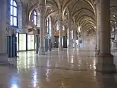 The monks' dormitory exhibits Romanesque sculptures, including a bust of Jesus Christ wearing a crown of thorns sculpted by Claus Sluter. The bust is a fragment of a larger limestone crucifix that was erected in the courtyard of the Carthusian monastery of Champmol in Dijon as part of Sluter's Well of Moses. It was removed from the monument at an unknown time in the 18th century and later transported to the museum after being located in a wall in Dijon in the 19th century.[3] The accompanying sculpture of Mary Magdalene has been lost.[4]
