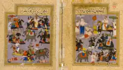 The Mughal Emperor Akbar shoots the Rajput warrior Jaimal during the Siege of Chittorgarh in 1567.
