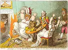 In Advantages of wearing Muslin Dresses! (1802), James Gillray satirically pointed out a hazard of untreated muslin: its flammability.