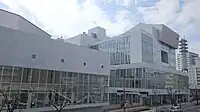 In addition to a transportation legacy, several world-class venues of the 1998 Winter Olympics were built, including M-Wave, Japan's first International Skating Union (ISU) standard indoor 400m double-track,[8] and which happens to be one of the largest hanging wooden roof structures in the world.[9] Finally, the Athletes Village beside the newly constructed Imai Station was built in advance of the Games by the city of Nagano as future public residential housing, and loaned to the Nagano Olympic Organizing Committee during the Games.[10] A Media Village, composed of a four-block 10-12 storey apartment complex named Asahi Danchi, was built in the Asahi district of Nagano, across the street from the M-Wave.[11][12] Asahi Danchi now includes private sector housing as well as housing for government employees.[13]
