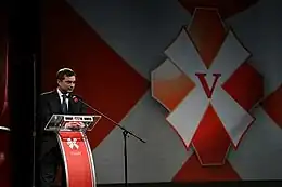 Senior figures in the Russian Presidential administration encouraged the formation of the group, which Moisés Naím labelled a government organized non-governmental organization (GONGO).[15] By late 2007, it had grown in size to some 120,000 members aged between 17 and 25. On April 6, 2012, the Nashi leader announced that the current form of the movement would dissolve in the near future, possibly to be replaced by a different organisation. He stated that Nashi had been "compromised" during the 2012 Russian presidential election.[16] In 2013, the organization ceased its activities and on December 2, 2019, the legal entity was liquidated.[17]