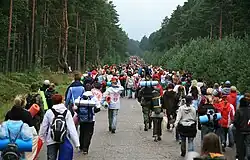 Every summer, Nashi runs recruiting camps all across Russia. New members receive a basic military-style training, according to Yakimenko. The July 2007 annual Nashi encampment, located 200 miles outside Moscow, was attended by over 10,000 members. It involved two weeks of lectures and calisthenics. Some reports mention the use of the camp to improve the demographics of Russia,[20] where twenty tents were set up for twenty newlywed couples to sleep together.[51] In an effort to deconstruct its discredited public image in 2012, Nashi invited opposition activists to its annual encampment named "Occupy Seliger" for that year; but few opposition activists attended.[52]
