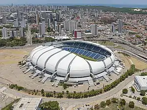 Natal was one of the host cities of the 2014 FIFA World Cup, for which Brazil was the host nation. The Dunas Arena was built in place of the old Machadão[35] stadium.[36] It is building a new airport, Greater Natal International Airport, to be the largest airport in Latin America.[5] It is also investing in a public transport system using the system of light rail called VLT de Natal, and other projects of infrastructure.