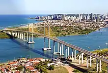 Natal (Brazilian Portuguese: [naˈtaw]) is the capital and largest city of the state of Rio Grande do Norte, located in northeastern Brazil. According to IBGE's 2022 estimate, the city had a total population of 751,300, making it the 19th largest city in the country.[3] Natal is a major tourist destination and an exporting hub of crustaceans, carnauba wax and fruits, mostly melon, sugar apple, cashew and papaya.[4] Natal is Brazil's closest city to Africa and Europe, its Greater Natal International Airport connects the city with many Brazilian destinations and also operates some international flights. The city was one of the host cities of the 2014 FIFA World Cup.[5]