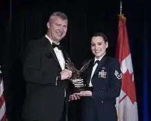 President of the Rocky Mountain Chapter presents the Patriot Award.