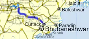 NH55 connects Sambalpur, Redhakhol, Boinda, Badakera, Angul, Dhenkanal, and terminates at Cuttack in the state of Odisha.[2]
