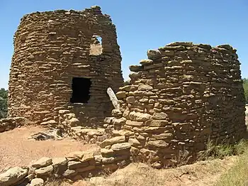The sites, now in ruins, date to what archaeologists have named the Gobernador phase of Navajo history. This was a period of population movements which began with the Pueblo Revolt of 1680, during which the Spanish were driven from New Mexico by an alliance of various Rio Grande and Western Pueblo tribes. The Spaniards returned in 1692, and it appears that some Pueblo people fled to the mesas and canyons of the Navajo.