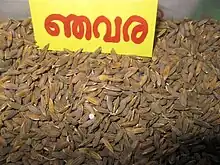 Navara rice is one of the many types of rice found in India, and is a unique grain plant in the Oryza group. It originated somewhere in Kerala, where it is regarded as endemic. In 2007–09, geographical indication status was granted. (Typically, such classification indicates an assurance of quality and distinctiveness which is primarily derived from a defined geographical region.)