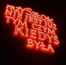 The Future Isn't What It Used to Be, 2015, neon artwork by Hubert Czerepok. The letters form a shape of Poland.