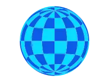 Gravitational light deflection at a neutron star. Due to relativistic light deflection over half the surface is visible (each grid patch represents 30 by 30 degrees).[43] In natural units, this star's mass is 1 and its radius is 4, or twice its Schwarzschild radius.[43]