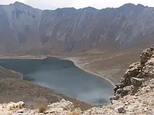 The Nevado de Toluca National Park is located southwest of the city of Toluca, Mexico State. It was decreed a park in 1936, primarily to protect the Nevado de Toluca volcano, which forms nearly the park's entire surface and is the fourth highest peak in Mexico. It is 45 km from Toluca and 135 from Mexico City.[1] The park was established with the aim of conservation, but the park is under increasing pressure from the growth of the Toluca metropolitan area as well as from illegal logging done by local communities who need the income.[2] The volcano has been long extinct and has a large crater in which are two shallow lakes. The crater and lakes are popular with visitors from Mexico State and Mexico City, especially when there is snow.[3] There are a number of archeological sites in the park, including the lakes themselves, which contain numerous offerings of copal and other items that were deposited during the pre-Hispanic period.[4] The park offers activities such as hiking, mountain biking and horseback riding as well as limited skiing facilities. Due to its altitude, the summit of the Nevado is significantly colder than the surrounding area.[5]