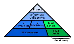 Kanak society has several layers of customary authority, from the 4,000–5,000 family-based clans to the eight customary areas (aires coutumières) that make up the territory.[42] Clans are led by clan chiefs and constitute 341 tribes, each headed by a tribal chief. The tribes are further grouped into 57 customary chiefdoms (chefferies), each headed by a head chief, and forming the administrative subdivisions of the customary areas.[42]