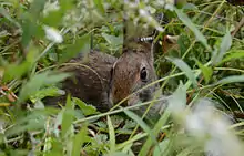 The New England cottontail (Sylvilagus transitionalis), also called the gray rabbit, brush rabbit, wood hare, wood rabbit, or cooney, is a species of cottontail rabbit represented by fragmented populations in areas of New England and the state of New York, specifically from southern Maine to southern New York.[2][4][5] This species bears a close resemblance to the eastern cottontail (Sylvilagus floridanus), which has been introduced in much of the New England cottontail home range. The eastern cottontail is now more common in it.[6]