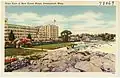 The hotel was built in 1888 to replace an earlier hotel that had been destroyed by fire.[1] In 1902 it was purchased by Allen Ainslie of the Maplewood Hotel in Bethlehem, New Hampshire and Edward R. Grabow of The Buckminster, who enlarged, renovated, and refurnished the building, which they renamed the New Ocean House.[2] The pair added 50 rooms (34 of which had private bathrooms) to bring the total to 210. The entire first floor was redone and included an elegant rotunda and lobby. Electricity was run throughout the entire building.[3] In 1922, a steel and concrete annex was completed, bringing the total number of rooms to 300.[4] By 1923, the property had grown from 3 acres to 19, was doing $400,000 worth of business annually, and valued at $1.3 million.[5] From 1926 to 1959 the New Ocean House was run by Clement Kennedy, who managed the New Ocean House during the summer and Vinoy Park Hotel in St. Petersburg, Florida during the winter.[6]