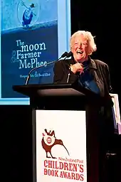 Margaret Mahy and Joy Cowley both had their first children's books published in 1969. Both became prolific and beloved authors, and have made a significant contribution to New Zealand children's literature.[70] Mahy won the Carnegie Medal twice in the 1980s and in 2001 she won the Hans Christian Andersen Award, the world's most prestigious children's literature award.[71] Cowley is internationally known for her children's educational books for children learning to read, as well as for her picture books, children's fiction, and young adult novels.[72] Other well-known authors for young children include Lynley Dodd (known for her picture books featuring small dog Hairy Maclary), Patricia Grace, Kāterina Mataira (a leading Māori language author), and Gavin Bishop (known particularly for illustration).[70]