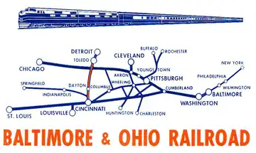 - ↑ "Baltimore & Ohio Railroad". Official Guide of the Railways. National Railway Publication Company. 100 (5). October 1967.reporting from the September B&O timetable