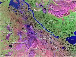 - 1 2 "Norilsk, Siberia". NASA. November 30, 2015. Retrieved February 8, 2016.