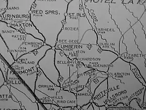NC 211's original routing through the Lumberton area is shown on this 1922 map.
