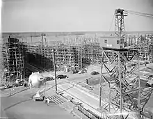 North Carolina Shipbuilding Company was a shipyard in Wilmington, North Carolina, created as part of the U.S. Government's Emergency Shipbuilding Program in the early days of World War II. From 1941 through 1946, the company built 243 ships in all, beginning with the Liberty ship SS Zebulon B. Vance, and including 54 ships of the US Navy. Most of the latter were attack cargo ships (AKA), amphibious force flagships (AGC) and ammunition ships (AE). A list of all 54 Navy ships appears at the end of this article, as does a link to a detailed record of all ships built by the company.