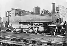 In 1901, a J class 2-6-4-0T was delivered.[9][10] It was the first articulated locomotive to run on the line and was, at the time, the heaviest 2 ft (610 mm) narrow gauge locomotive in the southern hemisphere, weighing 42 tonnes. It was more powerful than its 3 ft 6 in (1,067 mm) gauge counterparts.[11] Its weight played havoc with the light rails it ran over and in 1910 it was replaced by the K class 0-4-0+0-4-0 Garratt locomotives.[8][12] The J class languished in the Zeehan locomotive shed until 1949, when it was scrapped.