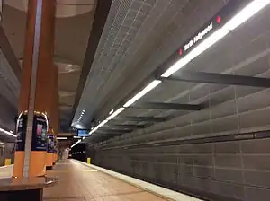 North Hollywood station is a combined rapid transit (known locally as a subway) and bus rapid transit (BRT) station in the Los Angeles Metro Rail and Metro Busway systems. It is the northwestern terminus of the B Line subway and eastern terminus of the G Line BRT route. It is located at the intersection of Lankershim Boulevard and Chandler Boulevard in the NoHo Arts District of the North Hollywood neighborhood in the San Fernando Valley of Los Angeles.[4]