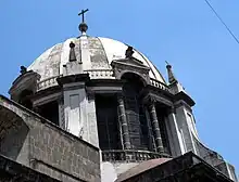 The Nuestra Señora de Loreto (Our Lady of Loreto) Church in the historic center of Mexico City was the last major church constructed during the colonial period. Constructed between 1806 and 1819, the church tilts significantly to one side due to being constructed of stone of two different weights.[1] Loreto is one of a number of churches in the historic district that the Archdiocese of Mexico says is in imminent danger of being lost due to structural damage from the uneven sinking.[2] In front of the church is a plaza named after the church which used to be the site of Mexico City's first synagogue.[3]