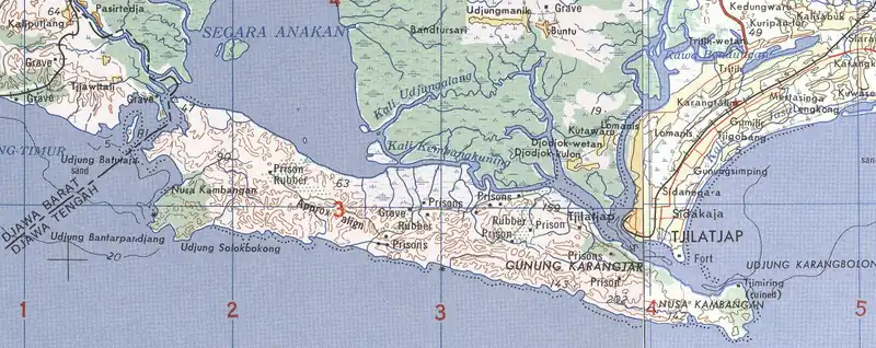 Detailed map of Nusakamabangan, circa 1950, (made by US Army Map Service)