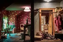 The dioramas are detailed representations of death scenes that are composites of actual court cases, created by Glessner Lee on a 1-inch to 1 foot (1:12) scale.[5][3][4] Originally twenty in number,[6] each model cost about US$3,000–4,500 to create.[7] She attended autopsies to ensure accuracy,[5] and her attention to detail extended to having a wall calendar include the pages after the month of the incident, constructing openable windows, and wearing out-of-date clothing to obtain realistically worn fabric.[3] The dioramas show tawdry and, in many cases, disheveled living spaces very different from Glessner Lee's own background.[8] The dead include sex workers and victims of domestic violence.[3][9][10]