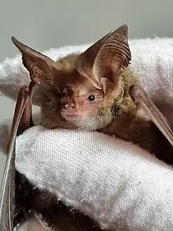 It is the type species of genus Nyctophilus.[3] Molecular data indicate Vespertilionidae, the family to which the lesser long-eared bat belongs, diverged from the family Molossidae (free-tailed bats) in the early Eocene period.[4] The family is thought to have originated somewhere in Laurasia, possibly North America.[5] The genus Nyctophilus itself has a limited fossil record, dating back only to the Pleistocene.[6][1][7]