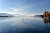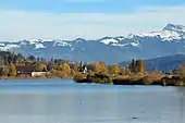 On the southwestern side, between Grynau and Lachen there is namely the bird reserves of national importance Güntliweid up to Bätzimatt at Buechberg.[6] The reserve is located on the south lake shore, at the foothills of Buechberg, and extends from the south of Bätzimatt at Schmerikon to Güntliweid east of Lachen.[7] It is considered as a particularly valuable resting place for waders, and may be obtained as resting place for waders on the train,[8] although there is a quarry that mines Bollinger Sandstein.[9]