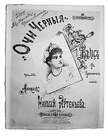 "Dark Eyes" (Russian: Очи чёрные, tr. Óči čjórnye, IPA: [ˈotɕɪ ˈtɕɵrnɨjɪ], lit. 'Black Eyes') is a well-known and popular Russian romance. The lyrics were written by the poet and writer Yevhen Hrebinka and first published on January 17, 1843. The melody associated with the lyrics has been borrowed from the "Valse hommage", Op. 21 for piano, written by Florian Hermann and published in 1879.