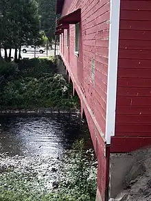 The Office Bridge (also called Westfir Covered Bridge[1]) is a covered bridge in Westfir, Lane County, Oregon, U.S. crossing the North Fork Middle Fork Willamette River at the south end of the Aufderheide National Scenic Byway[2] and edge of the Willamette National Forest. It is Oregon's longest covered bridge at 180 ft (55 m), and is one of only two in the state using triple Howe truss construction. It is the only covered bridge west of the Mississippi River which has a separate pedestrian walkway.[3][4][5]