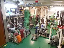 The primary purpose of a shipboard oily water separator (OWS) is to separate oil and other contaminants that could be harmful for the oceans. The International Maritime Organization (IMO) publishes regulations through the Marine Environment Protection Committee (MEPC).[2] On July 18, 2003, the MEPC issued new regulations that each vessel built after this date had to follow. This document is known as MEPC 107(49)[3] and it details revised guidelines and specifications for pollution prevention equipment for machinery space bilges of ships. Each OWS must be able to achieve clean bilge water under 15 ppm of type C oil or heavily emulsified oil, and any other contaminants that may be found. All oil content monitors (OCM) must be tamper-proof. Also whenever the OWS is being cleaned out the OCM must be active. An OWS must be able to clear out contaminants as well as oil. Some of these contaminating agents include lubricating oil, cleaning product, soot from combustion, fuel oil, rust, sewage, and several other things that can be harmful to the ocean environment.[4]