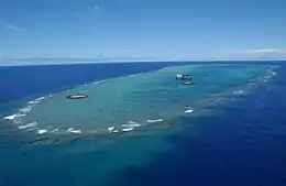 In 1789, Captain William Douglas arrived with the British ship Iphigenia and, in 1790, the place was named Douglas Reef (also spelled Douglass Reef).[3] This name continues to appear in modern sources. In 1796, what was likely the reef was then re-discovered by the brig Nautilus, under the command of Captain Charles Bishop, and the name Nautilus Rocks has appeared in some sources.[4]
