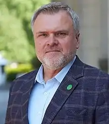 Oleksandr Volodymyrovych Kovalchuk (Ukrainian: Олександр Володимирович Ковальчук; born February 5, 1974) is a Ukrainian public figure and politician.[1] He lives in Zviahel, Zhytomyr Oblast. He serves as People's Deputy of Ukraine of the 9th convocation.[2] He serves as Deputy Chairman of the Verkhovna Rada Committee on Finance, Tax, and Customs Policy.[3] He is a Deputy Member of the Permanent Delegation to the Parliamentary Assembly of the Council of Europe. He is a member of the Political Council of the "Servant of the People" party.[4] Outside of politics, he served as chairman of the board, co-founder of the NGO «Interaction platform "Prostir"».[5]