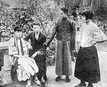 Image from A Flapper's Downfall. From left Olive Young, Jiqun Liu, Xiadian Lei, and Hanjun Liu (刘汉钧).