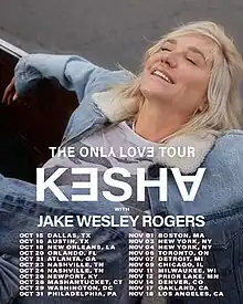 The Only Love Tour (originally dubbed the Gag Order Tour[1]) was the sixth headlining concert tour by American singer Kesha, in support of her fifth studio album, Gag Order (2023). She announced the tour on May 30, 2023, with Jake Wesley Rogers as the supporting act. The tour began on October 15, 2023, at The Factory in Dallas, Texas and concluded on November 26 at Hard Rock Live Sacramento in Wheatland, California.[2][3]