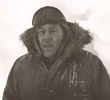 On October 31, 1956, at 8:34 p.m. local time, the first aircraft ever to touch down at the South Pole skied to a halt atop the Antarctic ice sheet at 90 degrees South latitude. The U.S. Navy R4D, was piloted by Lieutenant Commander (LCDR) Conrad C. "Gus" Shinn USN. Immediately after the plane halted--with engines running to avoid a freeze-up (a practice still followed to this day)--U.S. Navy Adm. George J. Dufek., commander of Operation Deep Freeze, stepped out onto the ice, along with pilot Douglas Cordiner, to plant the stars and stripes at the Pole. They were the first to stand there since Briton Robert Falcon Scott did more than 40 years before. Norwegian Roald Amundsen had beaten Scott in his race to the Pole. Amundsen's party survived the 800-mile return trip, Scott's did not.[4] This flight was one part of the expeditions mounted for the IGY. This was not only the first aircraft to land at the South Pole, it was also the first time that Americans had ever set foot on the South Pole. The aircraft was named Que Sera, Sera after a popular song and is now on display at the Naval Aviation Museum in Pensacola, Florida. This marked the beginning of the establishment of the first permanent base, by airlift, at the South Pole (today known as the Amundsen–Scott South Pole Station) to support the International Geophysical Year. It was commissioned on January 1, 1957. The original station ("Old Byrd") lasted about four years before it began to collapse under the snow. Construction of a second underground station in a nearby location began in 1960, and it was used until 1972. The station was then converted into a summer-only field camp until it was abandoned in 2004–05. The mission's second base, Byrd Station, was a (former) research station in West Antarctica established by the US Navy for Operation Deep Freeze II during the International Geophysical Year.[5] The United States Antarctic Program airfield, built to service Operation Deep Freeze (first mission) was later named Williams Field or Willy Field.[6]