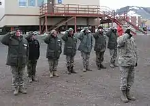 Airmen saluting the last LC-130 to depart from Antarctica in 2010
