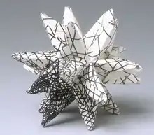 Copyright in origami designs and the use of models has become an increasingly important issue in the origami community, as the internet has made the sale and distribution of pirated designs very easy.[36] It is considered good etiquette to always credit the original artist and the folder when displaying origami models. It has been claimed that all commercial rights to designs and models are typically reserved by origami artists; however, the degree to which this can be enforced has been disputed. Under such a view, a person who folds a model using a legally obtained design could publicly display the model unless such rights were specifically reserved, whereas folding a design for money or commercial use of a photo for instance would require consent.[37] The Origami Authors and Creators group was set up to represent the copyright interests of origami artists and facilitate permissions requests.