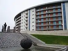 Orla de Brí was from Beaumont in Dublin, born in 1965.[1] She attended the Grafton Academy and studied fashion. After that she went on to work designing items for various high-street brands like A Wear. She married a systems analyst and they moved to Kilmoon, County Meath where they had two children while she continued studying art. She studied sculpture and bronze casting with a teacher in the North Strand VEC and the National College of Art and Design. De Brí began her first pieces and within ten years had won a major commission for the Park West Business Park.[2][3][4][5] De Brí has since had a number of solo shows and commissions around the world. Her art is in collections all over Ireland as well as abroad.[2][5][6]