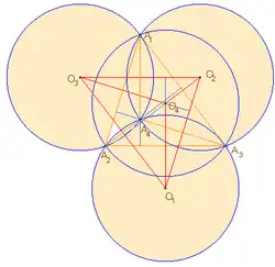 In geometry, an orthocentric system is a set of four points on a plane, one of which is the orthocenter of the triangle formed by the other three. Equivalently, the lines passing through disjoint pairs among the points are perpendicular, and the four circles passing through any three of the four points have the same radius.[1]