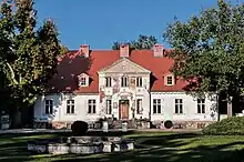 In the village there is also the neoclassical palace complex built between 1890-1904 and Classicist manor from the beginning of the 19th century, both surrounded by large park areas.[5]