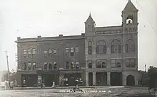 In September 1903 the city's fire department bought two lots, 44 feet (13 m) wide by 132 feet (40 m) long, west of the Metropolitan Opera House (later the Roxy Theatre) for $3,126.00 (equivalent to $101,815 in 2022). On September 19, 1905, a special election was held to gauge support from Owatonna residents for a $15,000.00 bond for the construction of a new city hall and fire station. The bond was passed. On July 17, 1906, the construction firm Hammel and Anderson, with a bid of $19,643.00, was awarded the contract for construction of the fire hall. On August 17 the two lots were donated to the city by the firemen for construction of a combination city hall and fire hall on the condition that the city would spend not less than $15,000.00 for construction of a three-story building. The firemen contributed $1,000 towards capital costs and obtained a 25-year lease. The cornerstone was laid on September 8, 1906. An opening ceremony was held on October 5, 1907 and the equipment was transferred to the new site, the same year, on November 5. The team used horse-drawn equipment until 1915, when the first motorized vehicle, a 1915 Jeffery, was purchased.[3]