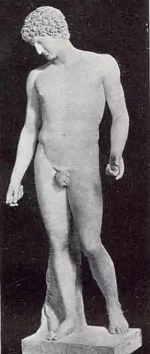 The illusion of a courtyard setting is further enhanced by the beautiful plaster cast statues that are strategically placed throughout the Palace. Almost all of these are originals produced by Pietro Caproni (1862–1928) and his firm, P.P. Caproni and Brother. With his brother, Emilio, the Caproni firm supplied plaster cast sculptures to schools, museums and theatres throughout America, including Symphony Hall, Boston. Eberson used them in all of his atmospheric theatres. Caproni believed that "the quality of a reproduction is of the greatest importance. In an original work of merit there is a subtleness of treatment—a certain feeling which, if captured in reproduction, places the finished piece within the realm of art itself." The statues installed at the Palace are castings of classical Greek and Roman works, including the Praying Boy, the Capitoline Antinous, Doryphoros and Diana of Versailles. A casting of Lorado Taft's George Washington, dressed in Revolutionary War clothing is located in a balcony niche.[19]