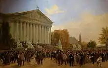 A crowd celebrates the proclamation of the Third Republic outside the Palais Bourbon (4 September 1870)